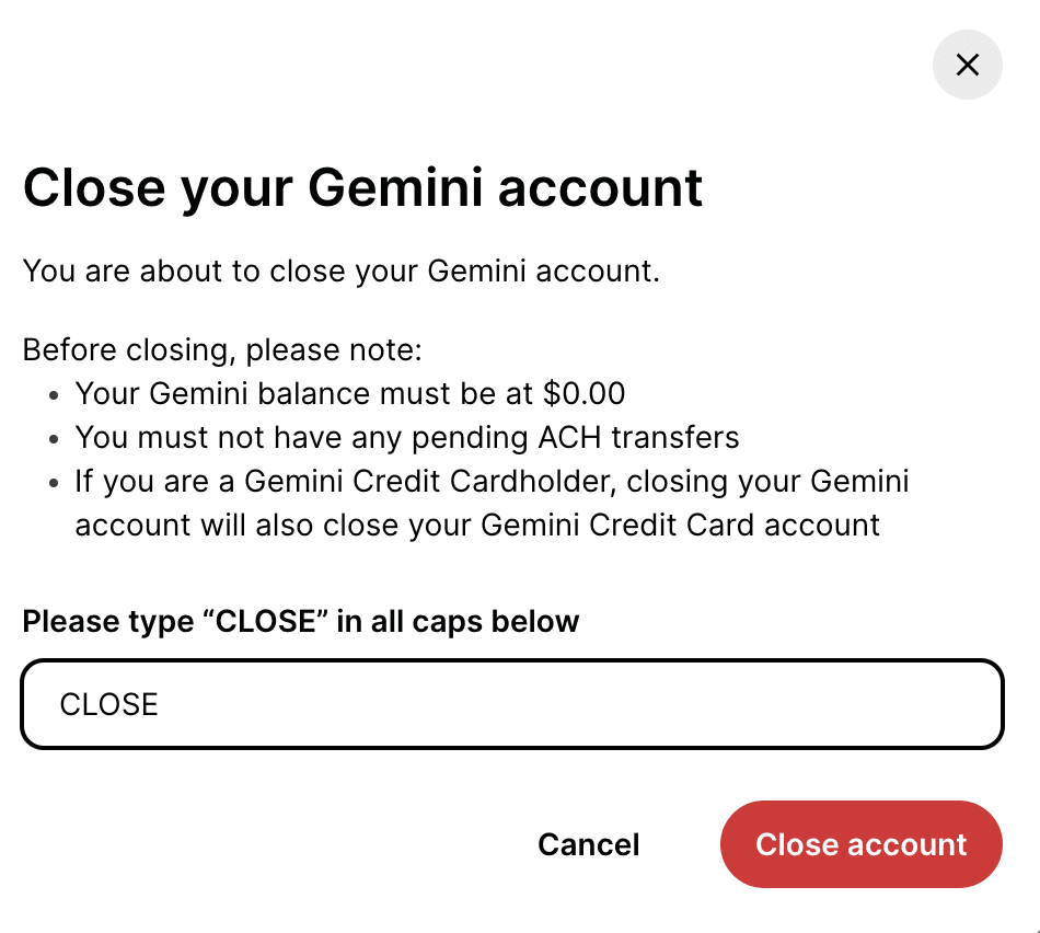 How to close or delete your Gemini Account