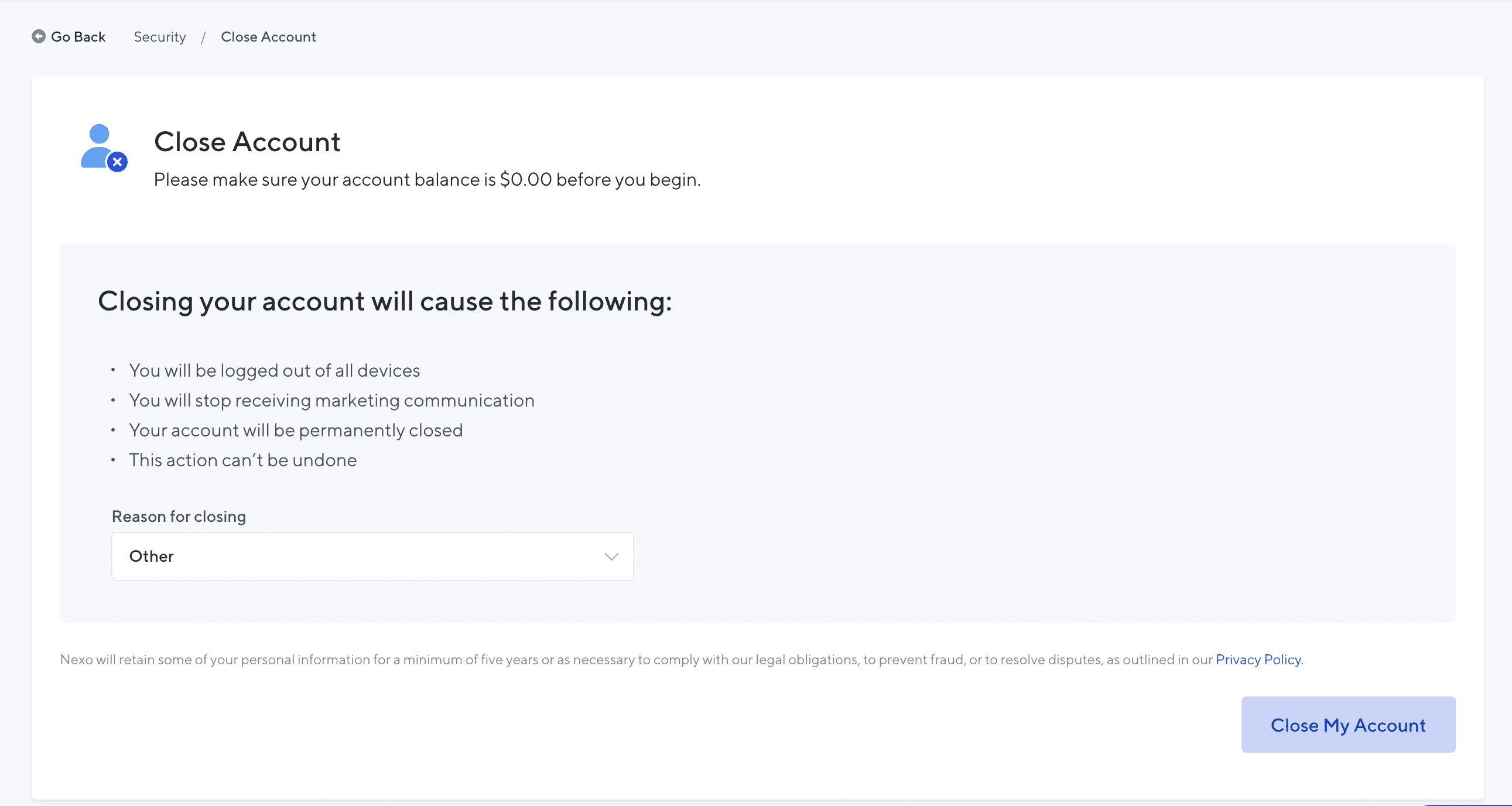How to close or delete your Nexo Account
