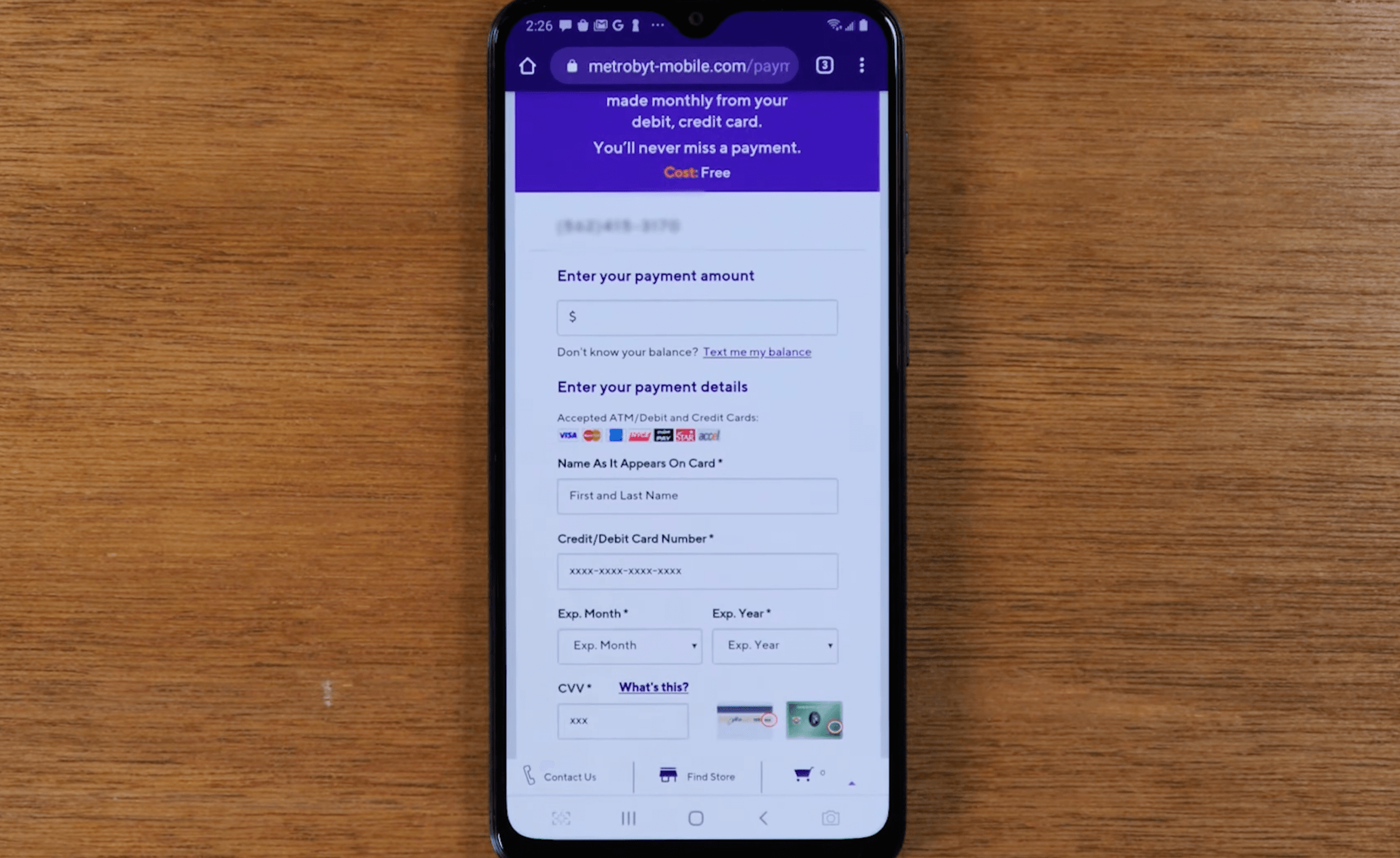 bank account or debit card and pay all your Metro PCS bills quickly.