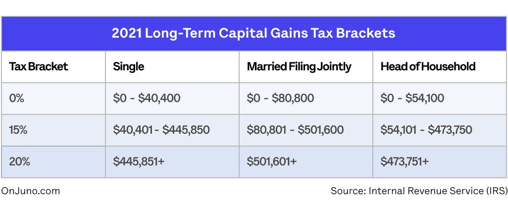 Here are the 2021 tax rates from the IRS for long-term capital gains: