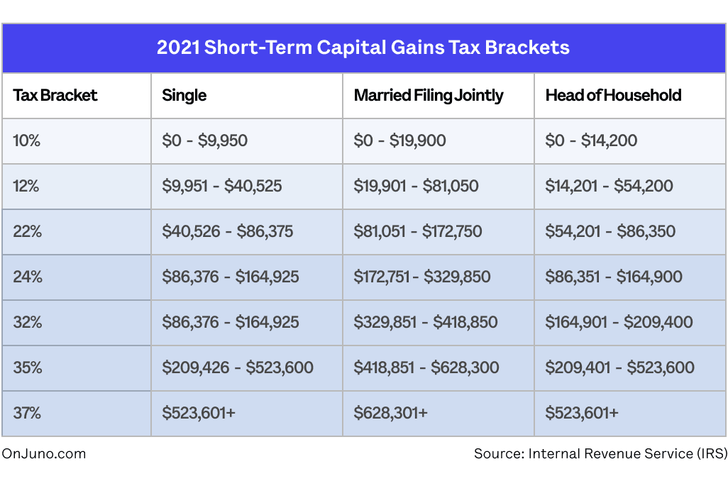 Here are the 2021 IRS tax rates for short-term capital gains: